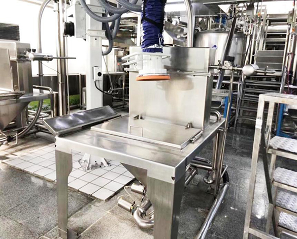 優康恩無塵投料站適用于食品、飲料、乳品、制藥、調味品等行業化料、混料生產中投料生產。無塵投料站主要有投料平臺、投料倉、除塵分離系統等組成。用于傾倒粉末或顆粒狀物料至下游生產線的投料設備,它可通過人工拆袋或者自動割袋傾倒等步驟使物料靠重力落進貯料斗中來完成投料工作。無塵投料站可解決生產投料過程中粉塵飛揚的問題,避免粉塵污染環境等,滿足易觀察、易操作、易清洗以及符合GMP要求。